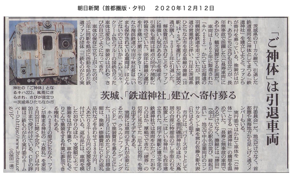 朝日新聞 首都圏版・夕刊他 2020/12/12